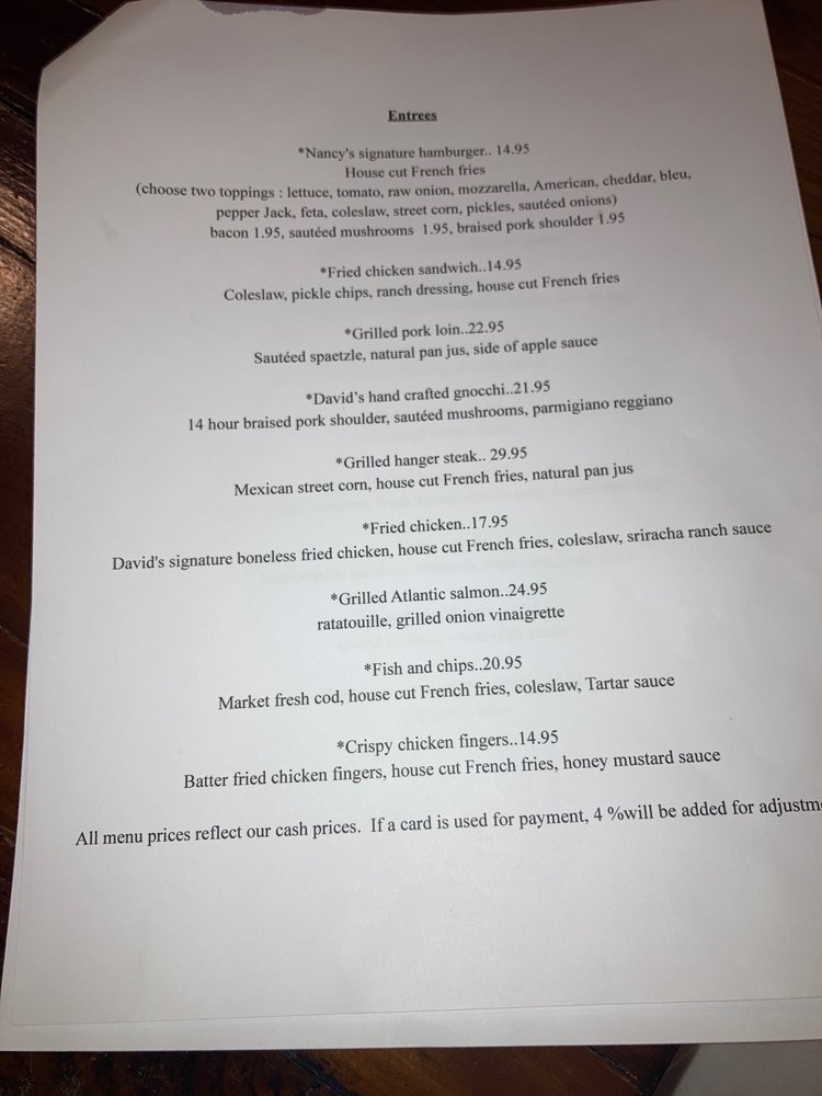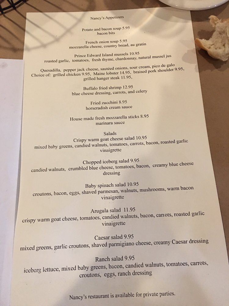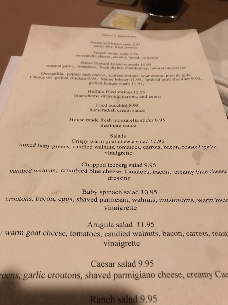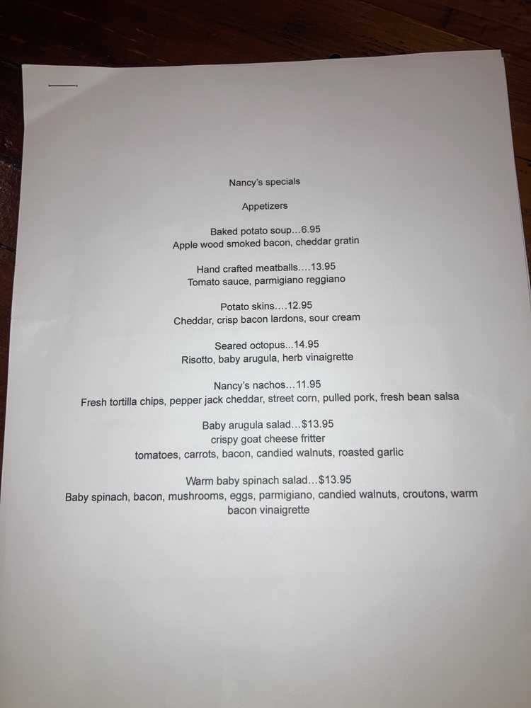 Nancy's Restaurant in Floral Park, NY, is a true neighborhood gem offering New American cuisine. The menu features a variety of options, including flavorful salads like Arugula Salad and Baby Spinach Salad, delicious appetizers like Fried Zucchini and House Made Fresh Mozzarella Sticks, and enticing entrees such as Grilled Hanger Steak and Grilled Salmon. The cozy atmosphere, prompt service, and friendly staff enhance the dining experience. Customers rave about the food quality, with one describing it as "Manhattan quality at Long Island prices." The restaurant also offers catering services, making it a go-to spot for events like baby showers. Nancy's Restaurant stands out for its delectable dishes, welcoming ambiance, and excellent service, making it a must-visit dining destination.